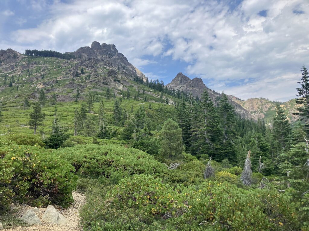 While it had been great to see Ben, leaving again was incredibly difficult and we were both pretty down when he brought me back to the trail on Saturday. To make matters worse for me, it was still hot and I had a long climb ahead. To make matters worse for Ben, he had to go to Sacramento. At the trailhead, some hikers were looking for a ride into town, and Ben offered to drive them, forcing us to not have too long and drawn out of a goodbye, which was probably for the best. I focused on the climb in front of me, which was up the Sierra Buttes, a distinctive, spiky mountain that had been looming for miles. After circling the mountain, the trail went into the Lakes Basin region, though sadly we only really went by one lake. Though it was sort of nice not to descend into the basin, after just climbing up, and the views of the lakes were nice, it was a bit infuriating in the heat to be so close and yet so far from the water.
