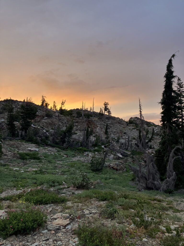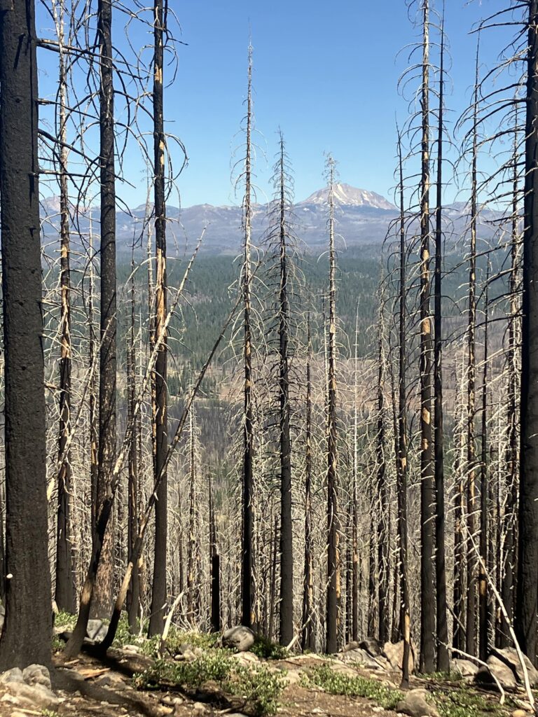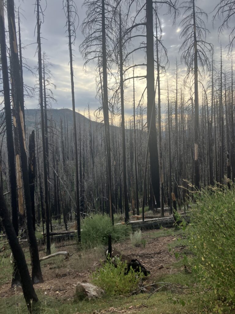 The group from the grocery store was sitting at the trailhead drinking some number of their 24 beers. I started off down the trail, mood bolstered by caffeine and extra food. The burned area continued for a couple miles, but soon the trail went through an area that had seemingly been spared from the fire. With the cooler evening air and the healthy, shady, green trees, it was so much nicer than the trail we had been hiking through that I almost wanted to cry. I know that I don’t live here, I’m only walking through. This isn’t my home, my backyard woods. We are certainly seeing the effects of climate change in New England, but mostly we have the luxury of complaining that it rains too much. I talk to the locals, the people who give me rides, the people who work at the restaurants, the people just out for the day or the weekend. They all talk about the fires the same way and use the same word: devastating. One year, they had a beautiful forest to hike in, the next year, they didn’t. The grief here is obvious, and I understand. I think about what it would be like if Franconia Notch burned, or the Kancamagus Pass, or just the woods by the river by our house. It would, of course, be devastating.