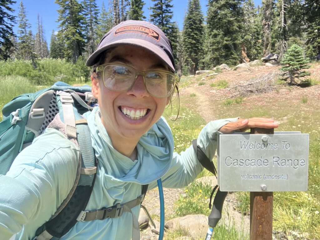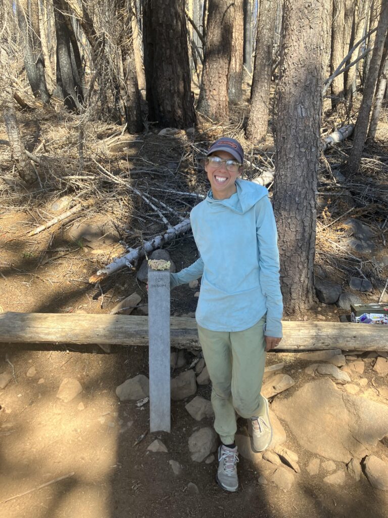 Once again, the trail immediately went back up, this time with a twelve mile, 5100 foot climb. Again, it wasn’t too bad, relatively gradual, though the flip side is that it seemed to go on forever. Luckily there were also plenty of streams and small waterfalls for most of the way, perfect for keeping cooler. By this time, I’d embraced the strategy of dunking my whole shirt in the water and hiking on, and this usually kept me pretty cool for a few miles. There were also some exciting milestones near the top of this climb. We hit the 1300 mile marker, and we crossed the divide between the Sierra Nevada mountains and the Cascades.