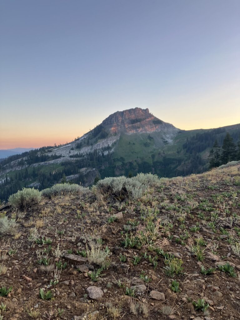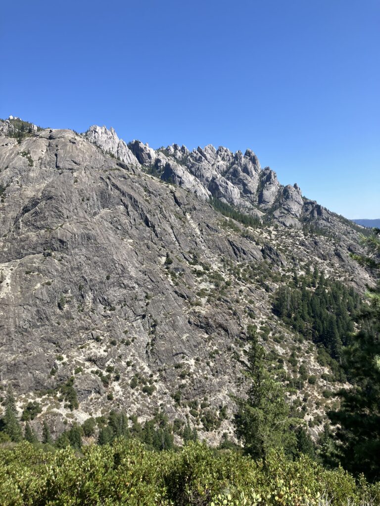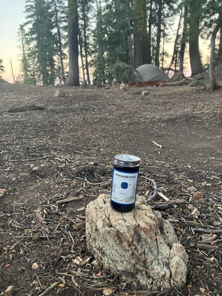 Leaving Mount Shasta, the trail went into Castle Crags State Park. Castle Crags is exactly what it sounds like: a bunch of craggy rocks that look vaguely castle-like. While the climb was, as per usual, hot, the scenery was at least nice. And then I was up on a ridge, the temperature was lower, there was a nice breeze and lovely views. I camped on a ridge with beautiful sunset views of Mount Shasta (the mountain). After the sort of terrible last week and a half, I had reverted to my AT hiker trash practice of packing our tiny bottles of wine to have something special with dinner. (I still vividly remember the weekend hiker in New York who stared incredulously at me and the other woman I’d been hiking with and said “This is what thru-hikers have for dinner? Peanut butter m&ms and wine??”) It seemed mildly more reasonable on the AT, where I had a stove, and could at least say I was having some wine with pasta, very normal. Here it was wine with janky tortilla wraps.