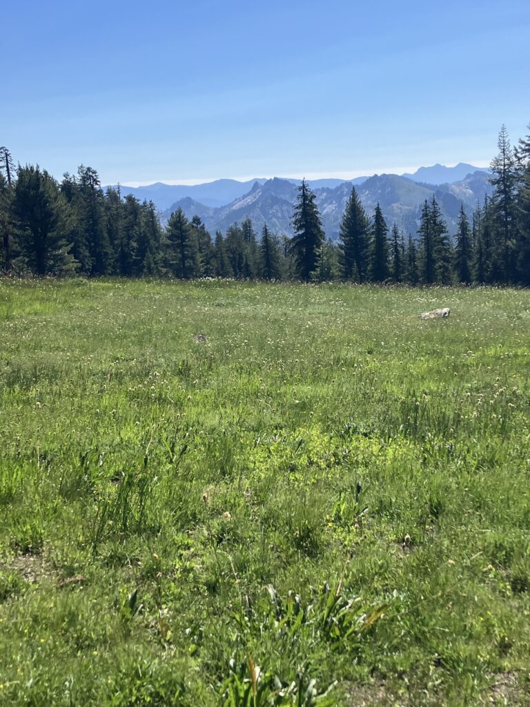 I hadn’t been planning on doing a super long day, given the elevation, but midway through the day, I was making good time and I got into a super manic mood. I decided that I really wanted to get to Oregon that day after all (or maybe I really wanted to leave California). It was a long day, and even after the main climb out of town, the trail wasn’t exactly flat. But it continued to be quite beautiful and it wasn’t too hot. It ended up being my longest day on trail yet, with the most elevation (74x my daily stair step goal, according to my watch), but I made it to the border just before sunset. After two months and three days, I had made it across California. Luckily, there was a large camping area just a quarter mile past the border, and there were about ten of us there, all having had the same goal for the day of finally making it to our second state.