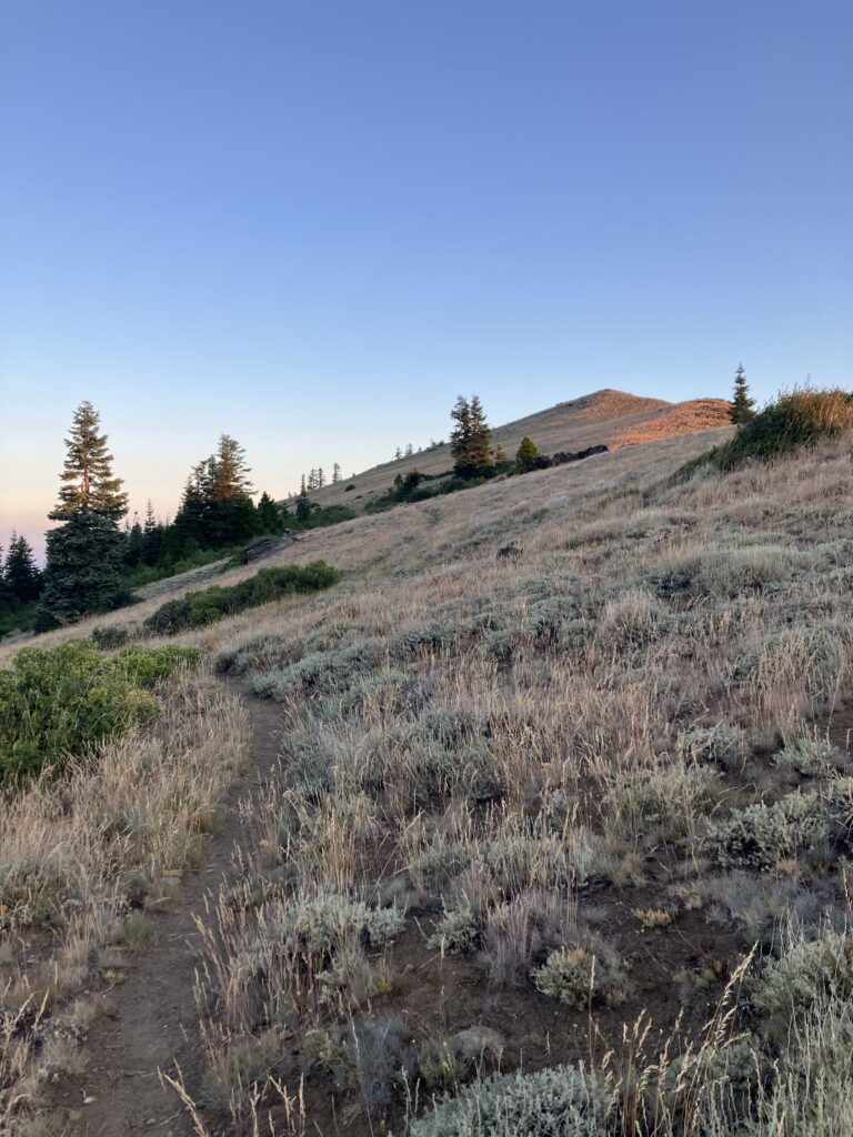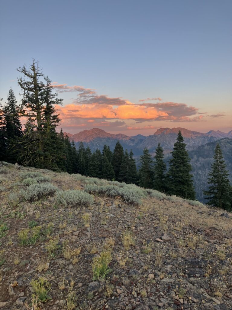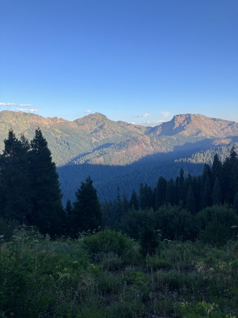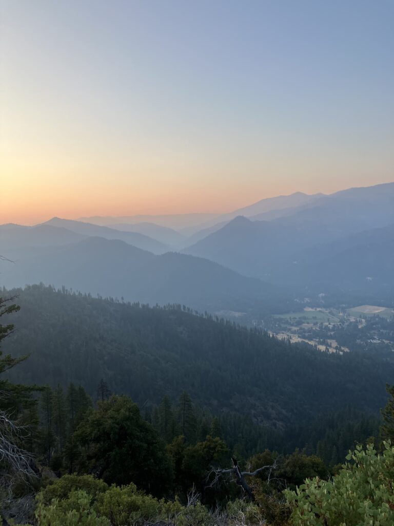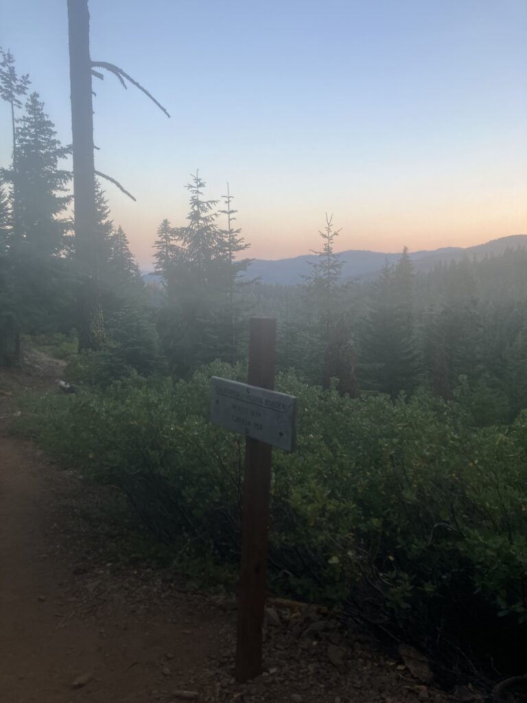 I’d found my ride with Ann, a woman who had posted on the guide app all the hikers used, offering rides and support. I’d expected her to be middle aged or retired, as most “trail angels” who gave rides seemed to be, but she was probably 25 or 26. She’d lived in Etna for a few years and worked in water quality and testing. We spent most of the hour long drive discussing her work drama, which was refreshingly normal. The trailhead for the side trail to get back on the PCT was up a dirt road, and I had seen that some of the people giving rides wouldn’t drive up it and were dropping hikers off at the base, adding about 5 miles to the walk back to the trail. Ann, however, had no issues and drove me up until it looked like the road got significantly rougher, where I said it was fine to drop me off, though she seemed like she might have tried to drive up it. I found out the next day in fact that on her way down from dropping me off, she saw five other hikers who had been dropped off at the base of the dirt road, and she turned around and drove them up as well. They also said it was fine to get dropped off where I’d gotten out, but she apparently told them, “I think I can do it, let’s try” and barreled up the rough dirt road, dropping them right at the trailhead. The moral of the story is that Ann was a bro. I had no issues walking up the road and then a short trail, which had some really nice evening views, getting back to the PCT in under two hours. There were some tent sites at the junction and I probably should have just stopped there, as it was getting dark, but I’d seen that there were some sites another mile and a half north and decided to go a bit further. Unfortunately when I got there, there were no tent sites to be seen, and sure enough, when I checked the comments on the app, the first one was “there are no tent sites here.” So I guess I should have checked that first. Fortunately the next site was only a half mile further and this one did exist, so I quickly set up my tent in the dark and went to sleep.