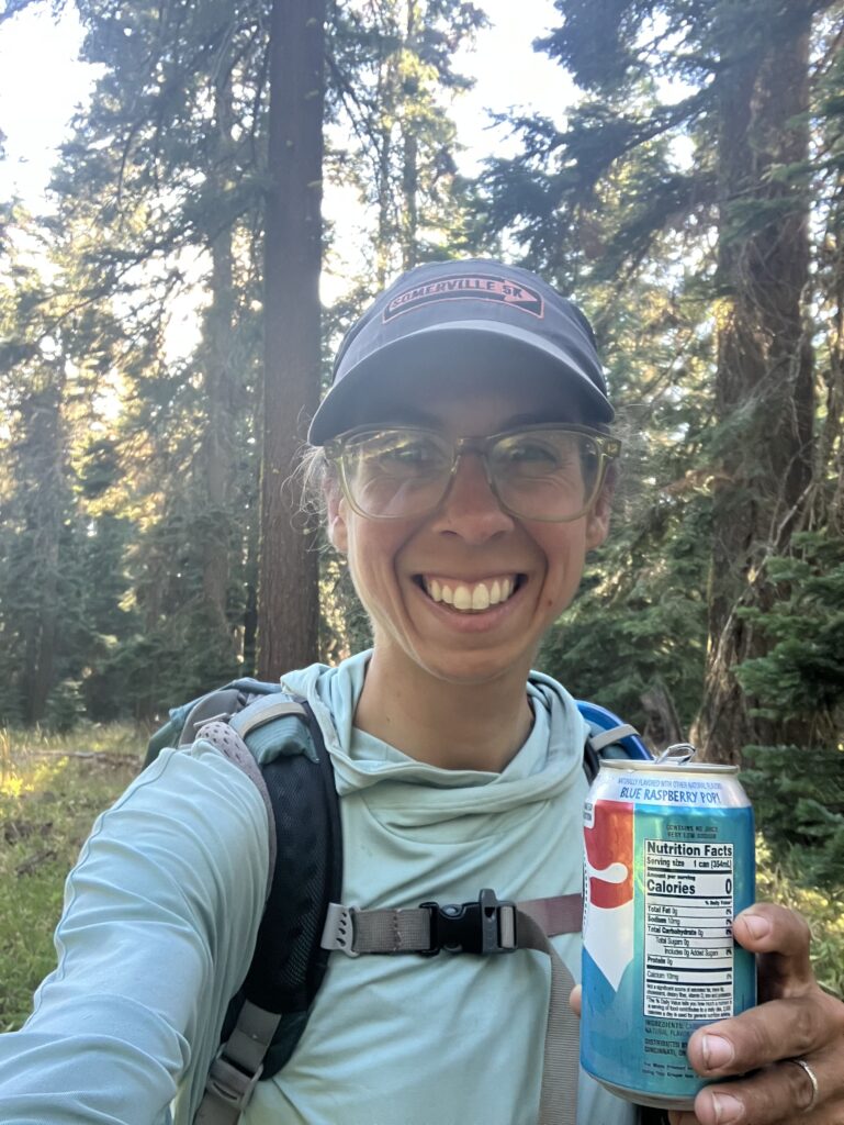 The Oregon section of the trail is not most people’s favorite – too boring, it’s said. But it is also known as the easiest section, with not much elevation change and really nice trail. Many people do the “Oregon Challenge” – attempting to cross the ~450 miles of trail in the state in two weeks, while some people see how many miles they can hike in 24 hours, generally aiming for somewhere between 40 and 50. I’m unlikely to do either of these challenges, but it was in that spirit that I left Ashland. Sort of true to expectation, the trail immediately after Ashland was neither particularly interesting nor particularly difficult. It wasn’t hard to do a 30 mile day, even getting a later start out of town. Near the end of the day, I was lured to visit the camp hosts of a nearby car campground by signs promising cold drinks (and potable water). I chatted with them for a bit and took a cold seltzer to go, hiking the last few miles of the evening enjoying the cool air and a cold drink.