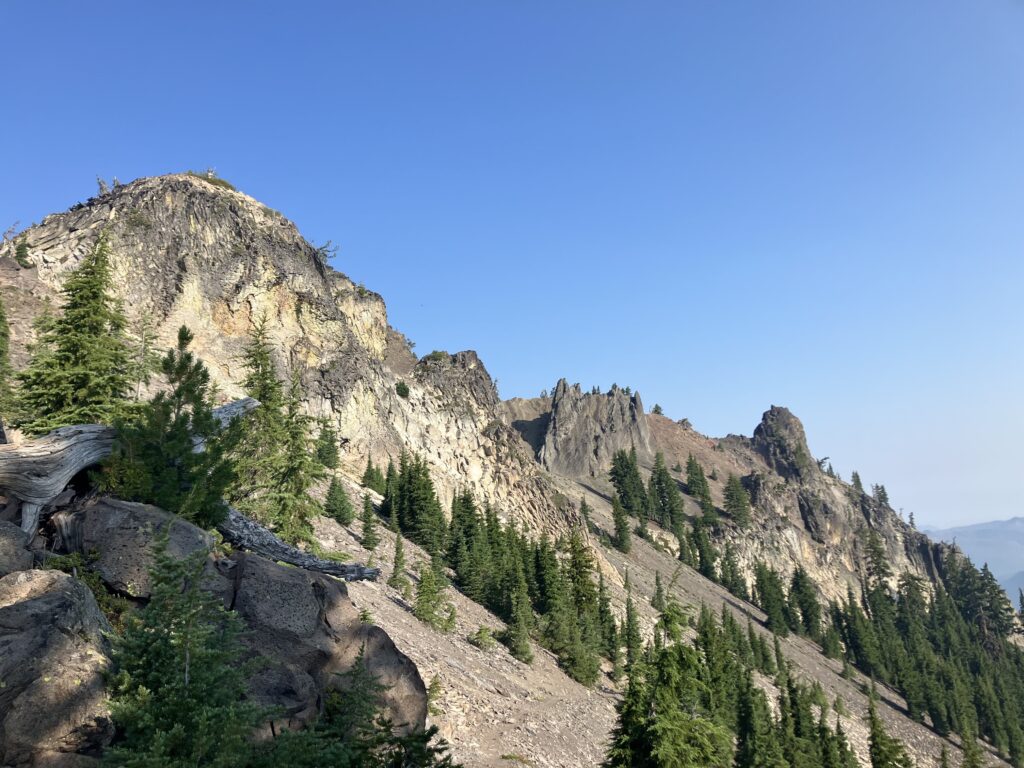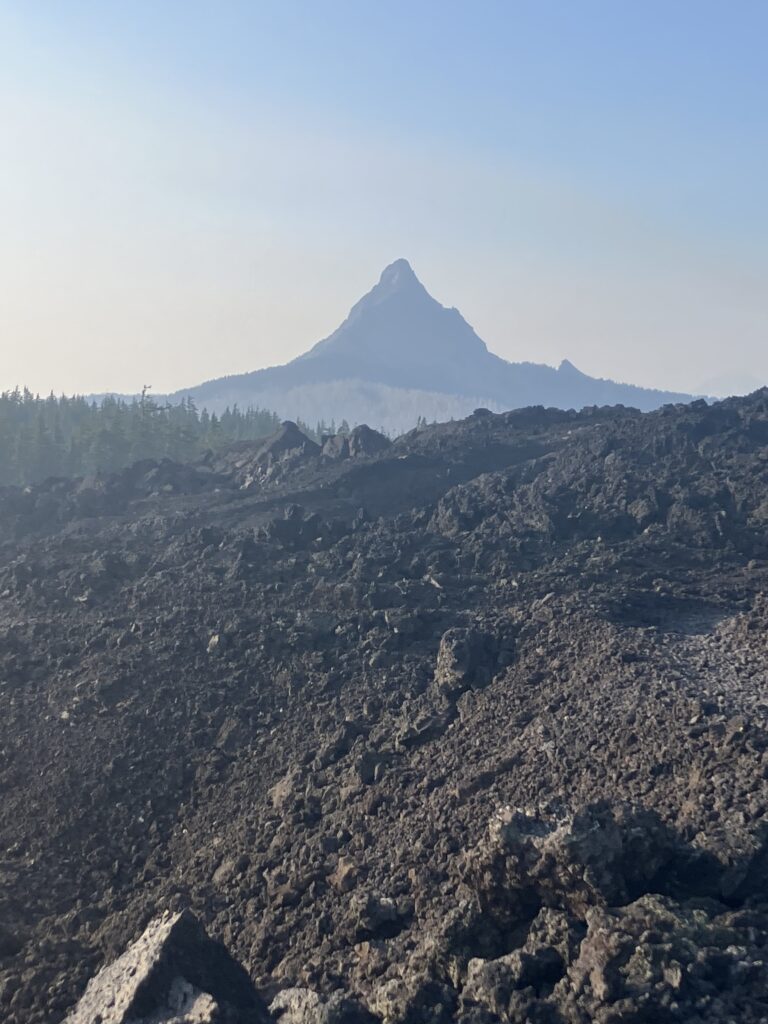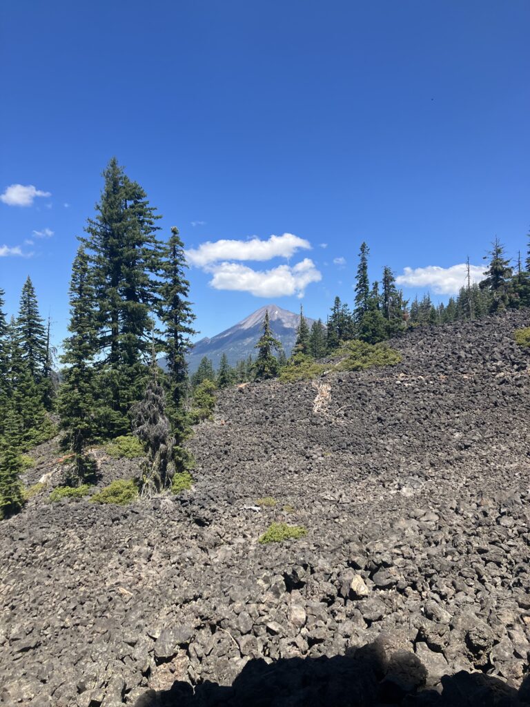 The next day it started to get warmer again, but luckily in Oregon there are trees. The trees are one of the main complaints about Oregon actually, the so-called “green tunnel.” (This term is also frequently derisively thrown around about the AT.) I, however, am a big fan of trees. Trees provide shade and make for a cooler forest. So I, personally, was having a nice, shady day. I also got my first taste of the volcanic side of the Oregon section, making my way through a large lava rock field. This was, admittedly, less shady, but it was short sections and it was neat, so I gave it a pass. This also ended up being my longest day on trail so far, at 38.7 miles. (My longest day on the AT was 36.5 miles, in New York. It was a chaotic day, preceded by an even more chaotic day that had involved me going to urgent care to get antibiotics. I showed up at the shelter to find my friend, who had thought I was ahead, and two older men out for the weekend. When I said I’d done nearly 37 miles, one of the men immediately offered me whiskey from a flask, which I accepted with a “sure, why not.”)