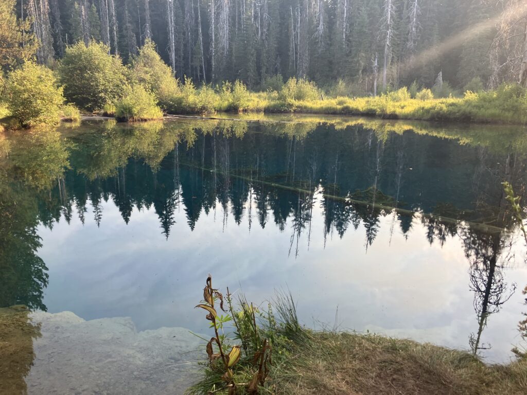 After camping amongst the lava rocks, it turned out that that was basically the end of the lava field. It transitioned seamlessly into what seemed like a fairly recent burned area. The trail circled around Mount Washington, which was taller and pointier than our Mount Washington in NH, but certainly less significant within its own mountain range, being less impressive than nearby Mount Jefferson and Mount Adams (and obviously Mount Hood). A few miles into the day, I stopped by Big Lake Youth Camp (on the shores of the imaginatively named Big Lake), a camp area that had a building set aside for hikers with showers, laundry, and a kitchenette. I took the opportunity to shower, charge things, and eat breakfast. It was a nice place, but it was a little disorienting to call Ben with the sounds of children yelling in organized activities in the background. After leaving the camp, I made it approximately three quarters of a mile before stopping again where a group was doing trail magic out of their RV – pancakes, fruit, cookies, drinks, the whole deal. I sat and talked with them for a while, and with the other hikers there, who were hiking southbound. Two of the other hikers had section hiked the trail before, in 2011 and 2014, and it was interesting to hear from them how much the trail had already changed – landscape, climate, culture, etc. Reluctantly I moved on – I did need to do some hiking for the day and I still needed to go into Sisters to resupply.