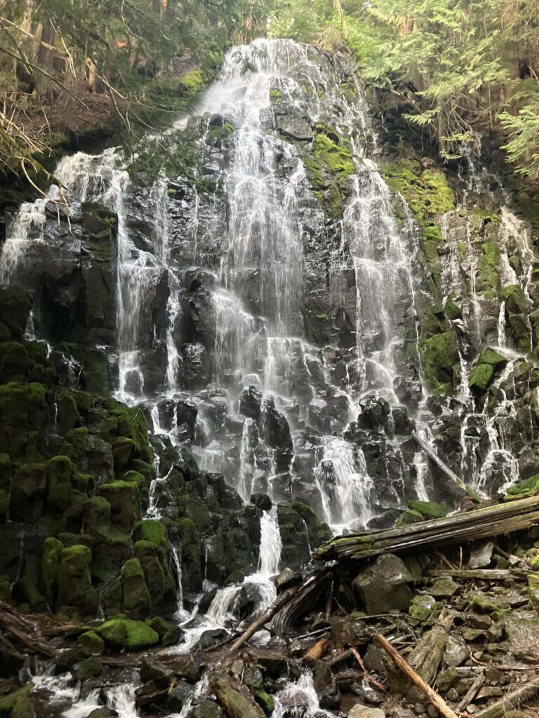I’d heard a lot about how cool the Eagle Creek trail was, and it was cool, but no one had mentioned that the whole thing was burned. One last burn to say goodbye to Oregon. This was apparently from a 2020 fire, which was started by some kids setting off fireworks. So that put a bit of a damper on the experience. There were several beautiful waterfalls along the way, most notably Tunnel Falls, where the trail follows a cliff edge through a tunnel behind the waterfall. This was a popular day hike destination, and as I was walking leisurely to camp, a number of harried day hikers kept asking me “how far is it” with no context or explanation, and I was mildly concerned for them all, being out here, 6-7 miles from the trailhead, around 7pm. In the morning, I finished making my way into town. Since I was likely going to end up skipping ahead on the trail from Portland, I went to the grandly named Bridge of the Gods and walked across the river into Washington. (Hilariously, for being a key part of a famous footpath, the Bridge of the Gods has no sidewalk.) Then I turned around and walked back. I had made it here from Mexico, there was no way that I wasn’t going to walk across the Columbia. Then I set up at a coffee shop to call Ben and start figuring out the next few weeks. All of our plans for the end of the trail didn’t really make sense anymore, so it was time for new plans (this is why you shouldn’t make plans).