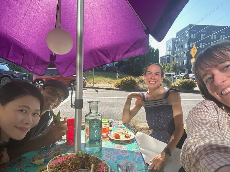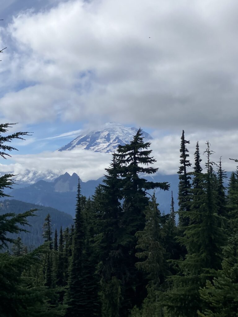 Midday, I took the bus into Portland (on this bus were about eight PCT hikers and two tourists), where I was actually getting to see people I knew for once. Two of my friends from work live in Portland and were happily available to have dinner and hang out with me for a while. Krishna and Hannah had also graciously agreed to pick me up from the bus station, so I was really living the high life now. I did manage to get new shoes, at a running store that also had a bar in it. We had pre-dinner ice cream and then went to dinner at an awesome spot that did Thai-Barbecue fusion and was extremely delicious. On the trail plans side, I had gotten a train ticket for the next day up to Centralia, Washington and arranged a ride from there to White Pass, the closest easily accessible trailhead on the north side of the fire closure. I also decided that I would go over to Mount Rainier when we passed near it and try to get walk-up permits to do the Wonderland Trail, a 93 mile loop around the mountain. This meant packing out four extra days of food (for a total of eight days, yikes). If it didn’t work out, well, I would just have carried a lot of extra food for no reason.